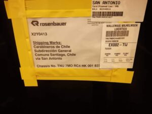 Según informa el sitio PortalPortuario.cl, el carro policial fue transportado a bordo de la nave de bandera maltesa, Wallenius Wilhemsen Tongala, de la que se descargarán un total de 600 vehículos de todo tipo y se embarcarán otros 75.
