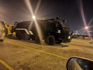 Durante la noche de este lunes arribó al Puerto de San Antonio uno de los nuevos carros lanza agua adquiridos por el Ministerio del Interior para renovar la flota de vehículos blindados de Carabineros de Chile.