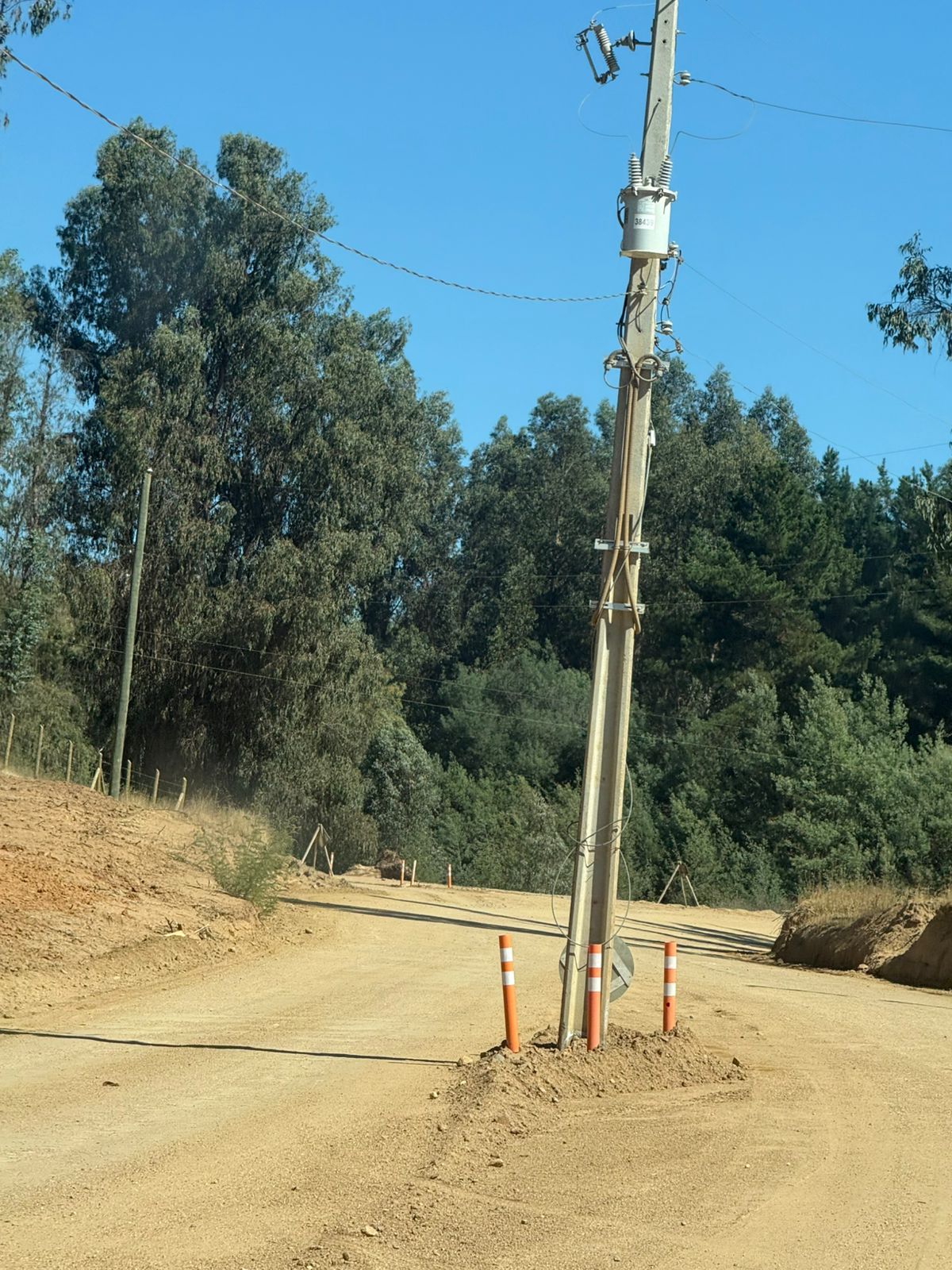 Cuatro postes del tendido eléctrico instalados en medio de la calzada de la Ruta J-80, que une las comunas de Hualañé y Vichuquén (Llico), están generando gran preocupación entre los conductores que transitan por la zona, debido al evidente y grave peligro de accidentes que esta situación representa.