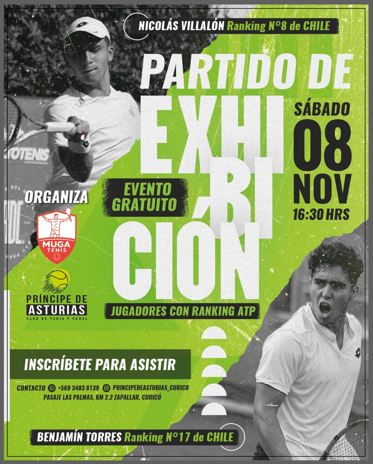 Este sábado 8 de noviembre, a las 16:30 horas, el Club Príncipe de Asturias de Curicó será el escenario de una exhibición de tenis de alto nivel completamente gratuita para la comunidad.