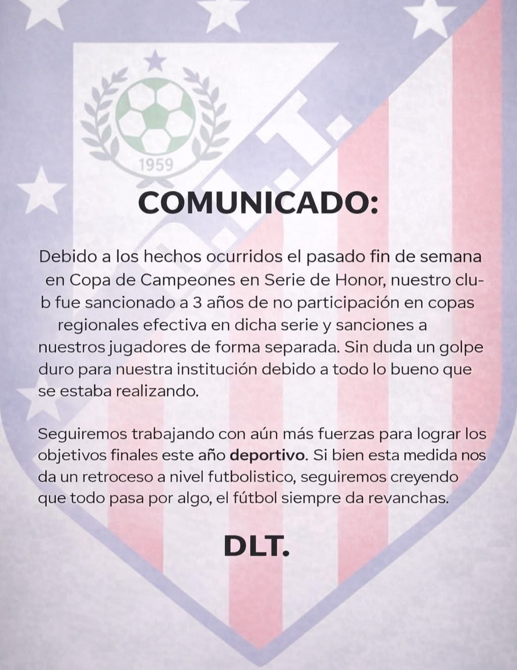 Pese a la gravedad del castigo en el ámbito regional, el comunicado enfatizó que esta situación "no los aparta de sus objetivos deportivos para la presente temporada", dando a entender que el club enfocará sus esfuerzos en las competencias locales.