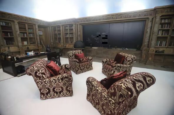 Las imágenes revelan dormitorios, baños, salas y una habitación con una silla de dentista y máscaras en la pared. También se observa un teléfono con contactos en marcación rápida y una pizarra con palabras como “poder” y “engaño”.