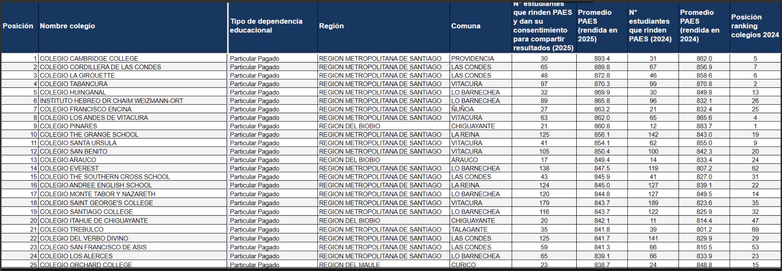 A continuación, se detallan los establecimientos que alcanzaron el éxito académico en este proceso de Admisión 2026: