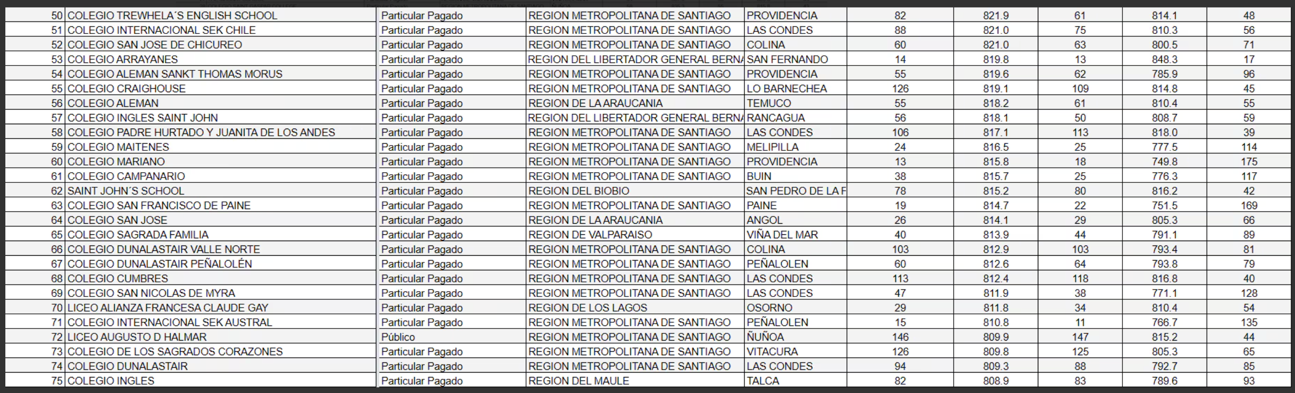 Único colegio público en el Top 100: 72º: Liceo Augusto D’Halmar - Ñuñoa.