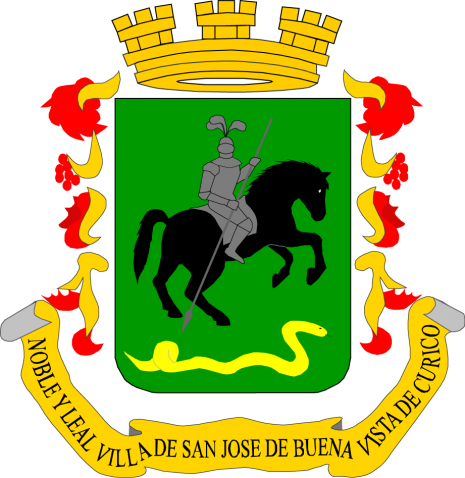En su parte inferior, lleva la frase “Noble y Leal Villa de San José de Buenavista de Curicó” y en la parte superior lleva una corona mural de oro.