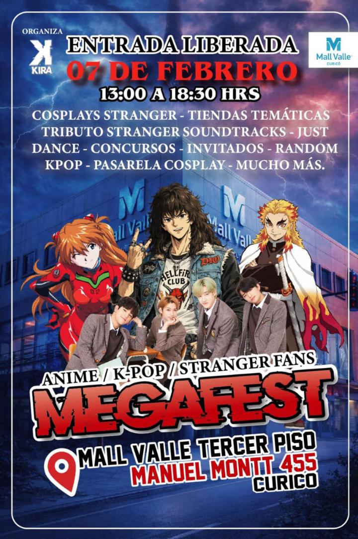 Este fin de semana, los fanáticos del anime, K-POP y la reconocida serie de Netflix, Stranger Things, se unirán en un solo evento temático en Curicó bajo el nombre de “MEGAFEST”, organizado por Kira Producciones.