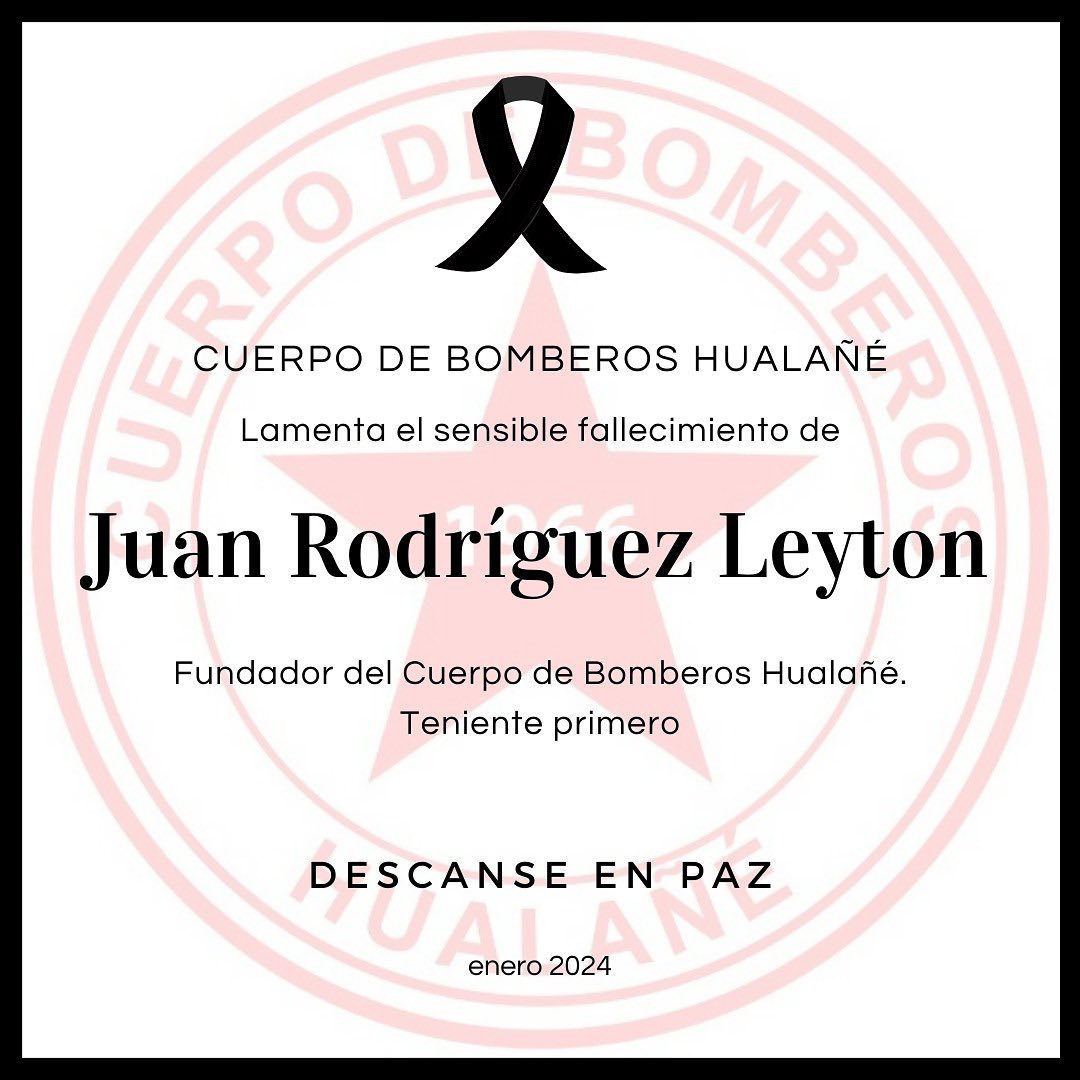 Pesar por el fallecimiento Juan Rodríguez Leyton, fundador del Cuerpo de Bomberos de Hualañé