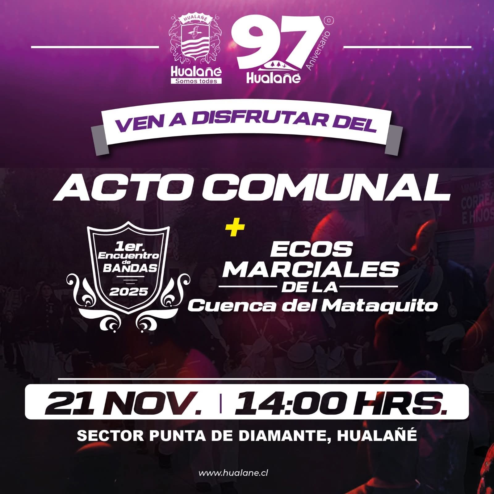 La comuna de Hualañé se prepara para celebrar su 97° aniversario comunal con una doble jornada de celebración cívica y cultural este viernes 21 de noviembre.
