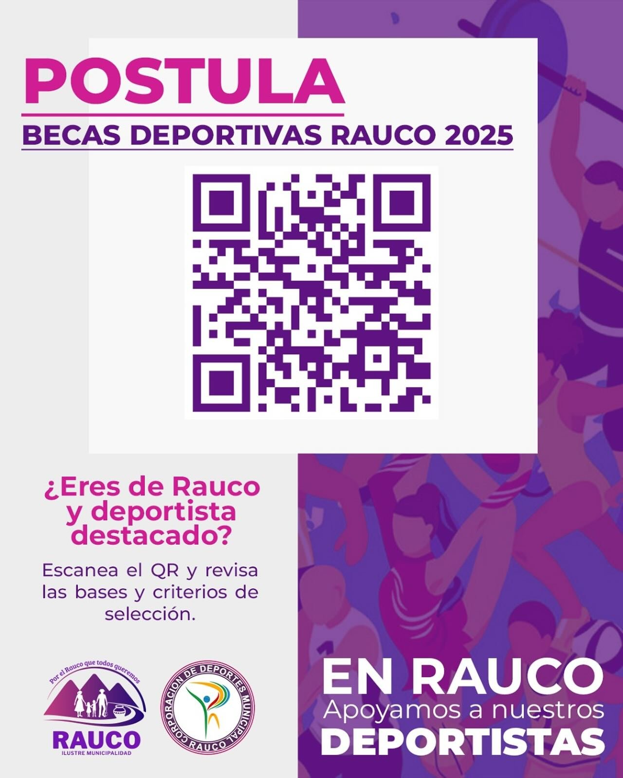 La municipalidad de Rauco, en conjunto con su Corporación de Deportes, informa que ya se encuentran abiertas las postulaciones para las Becas Deportivas 2025, una iniciativa impulsada por la alcaldesa, Claudia Medina y aprobada por el Concejo Municipal, que busca reconocer, apoyar y motivar a los deportistas de la comuna.