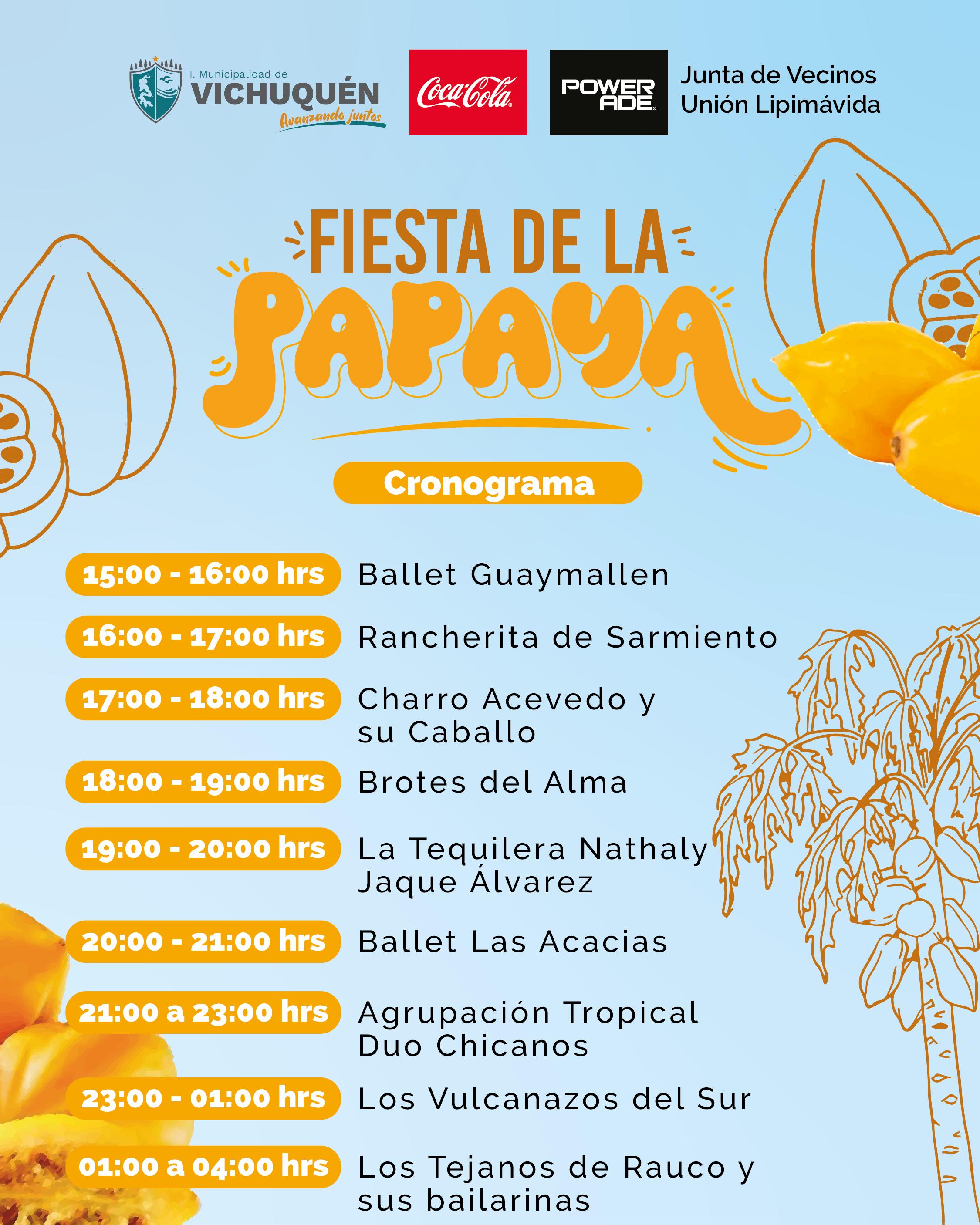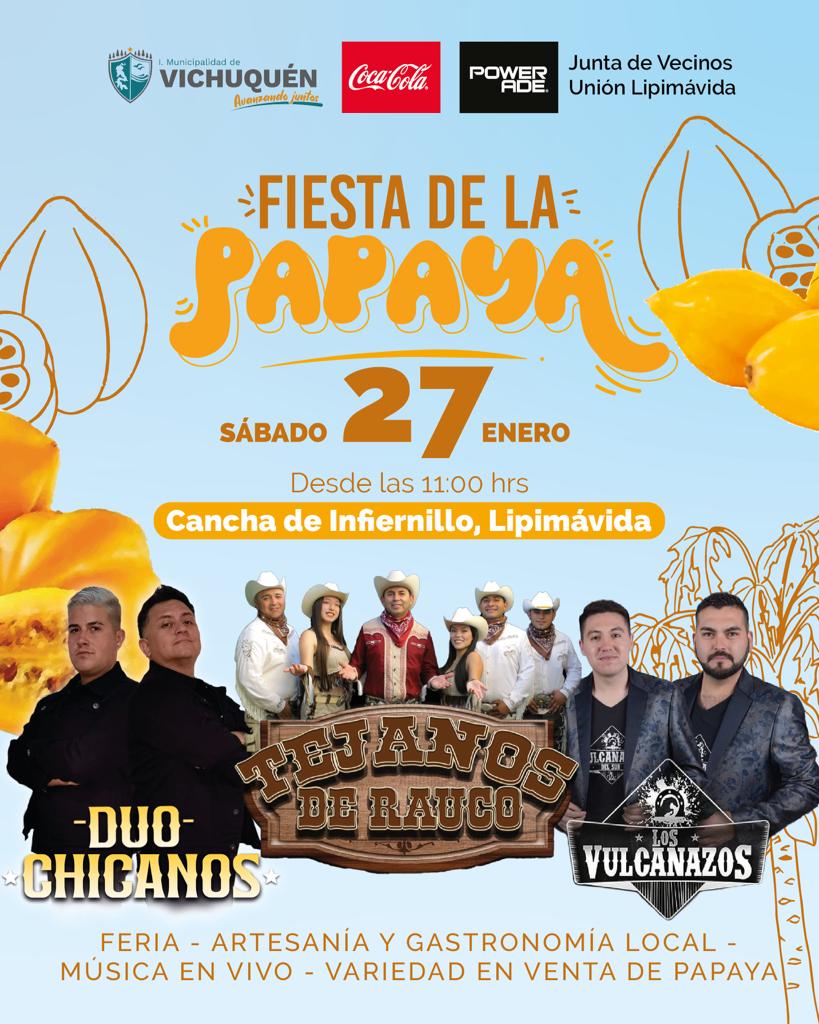 La Junta de Vecinos “Unión Lipimávida”, en conjunto con la municipalidad de Vichuquén, han programado para este sábado 27 de enero, la tradicional Fiesta de la Papaya - 2024.