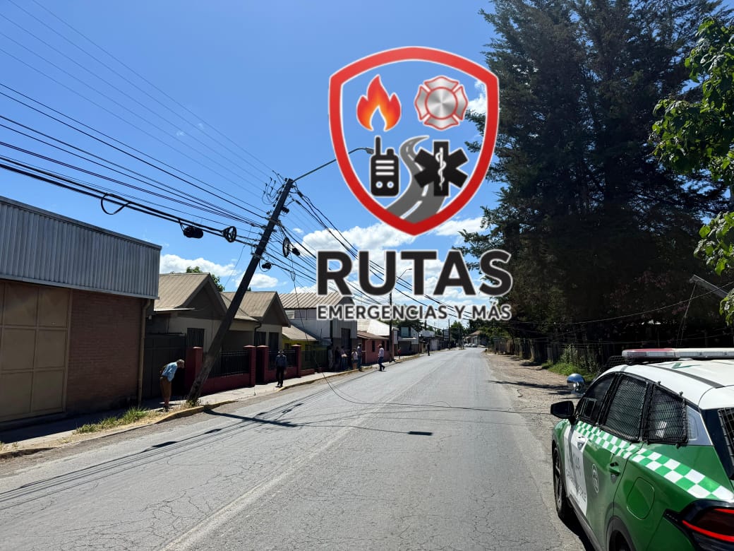 El accidente se registró en el kilómetro 13 de la Ruta J-68 (Sagrada Familia-Villa Prat). De acuerdo con el informe de Carabineros, el vehículo de carga se enganchó con cables de telecomunicaciones que atravesaban la vía, lo que generó la inclinación peligrosa de dos poste del alumbrado público.